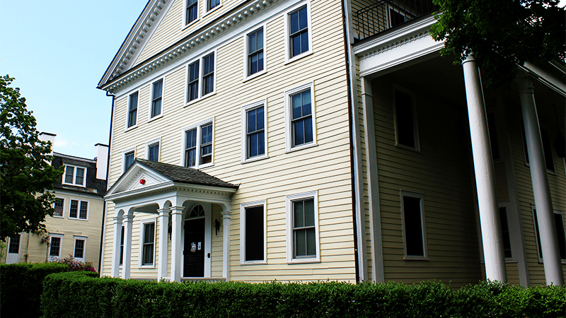 Although Duckett is over 200 years old, it was not acquired by Smith until 1968. Throughout its history, however, it has been associated with the college. At the turn of the century, it was a boarding house for Smith students who lived off campus. Later it was owned by an alumna and used as part of a school for girls. The house is named for Eleanor Shipley Duckett, a former professor in the Department of Classical Languages and Literatures. Mary Ellen Chase, for whom Chase House is named, was Duckett's life-long companion, and so the names of these adjoining houses honor these outstanding women scholars and teachers. The house library holds several volumes of their published works.
