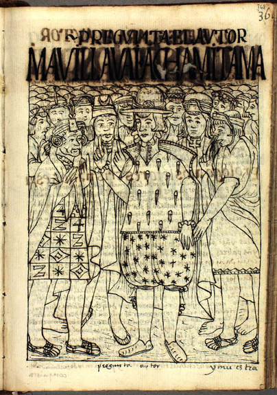 Leer más Regresar a Galería Pregunta el autor, Nueva corónica i buen gobierno, ca. 1615. Felipe Guaman Poma de Ayala. Biblioteca Real, Copenhague, Dinamarca.