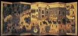 Biombo con vista del palacio del Virrey en la Ciudad de México, s. XVII. Museo de América. |