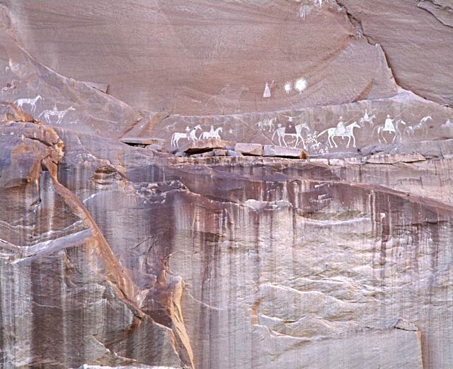 Discussion Back to Gallery Narbona Expedition Pictograph, 19th c. Canyon de Chelly, Arizona, USA. Photograph by George Huey.