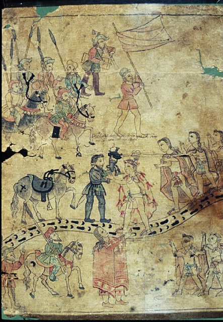 Discussion Back to Gallery Cortés Greets Xicotencatl, Lienzo de Tlaxcala, mid-16th c. Benson Latin American Collection, University of Texas, Austin, USA.