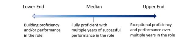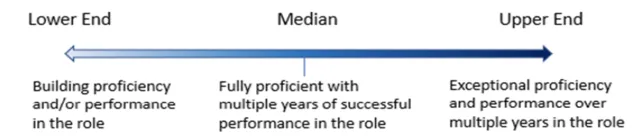 - Individuals who are building proficiency and/or performance in a role are typically paid below the median, and conversely, individuals with exceptional proficiency and performance over multiple years in the role are typically paid above the median.
