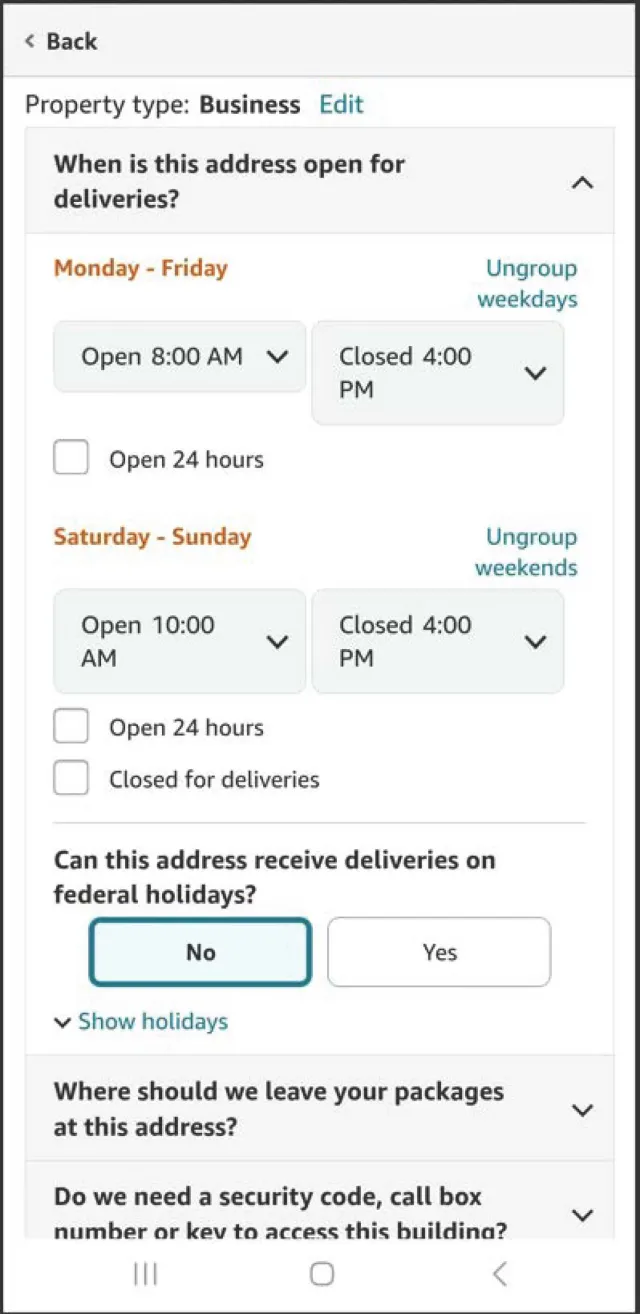 Can this address receive deliveries on federal holidays?