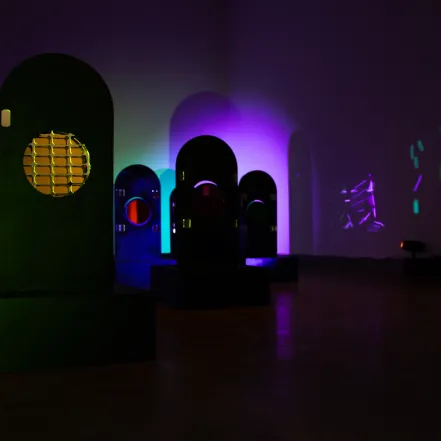 This immersive installation examines the connection between the Black built environment and space/time. It draws on the complex histories of Black cities and townships established after U.S. slavery, as well as the rich history of religious syncretism that developed alongside this migration. This work offers a new understanding of illegibility and of place, time, and space as crucial tools for subverting systems of power.